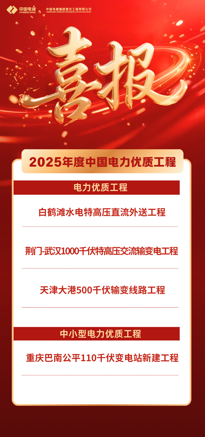 重慶電建四個(gè)項(xiàng)目獲評(píng)“中國(guó)電力優(yōu)質(zhì)工...